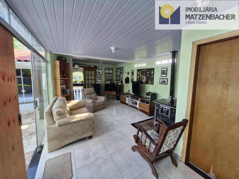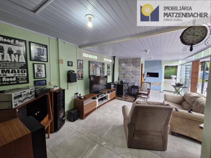 Sala com lareira, área gourmet, piscina e vaga para 4 carros.