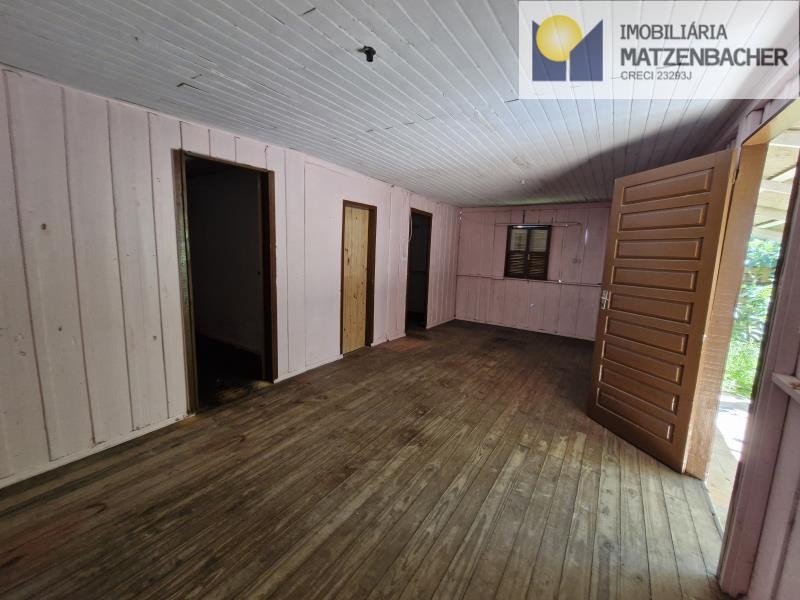 Casa popular de madeira, com 2 doprmitórios, sala e cozinha integrados e 2 dormitórios mais 1 banheiro e área externa coberta..